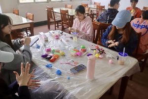活动伊始,同学们运用扭扭棒、超轻粘土、毛线球等材料,自主创作兼具创意与节日氛围的手工作品。过程中,大家相互交流技巧、分享灵感,在动手实践中增进互动,为后续的美食环节铺垫了温馨的氛围基调。